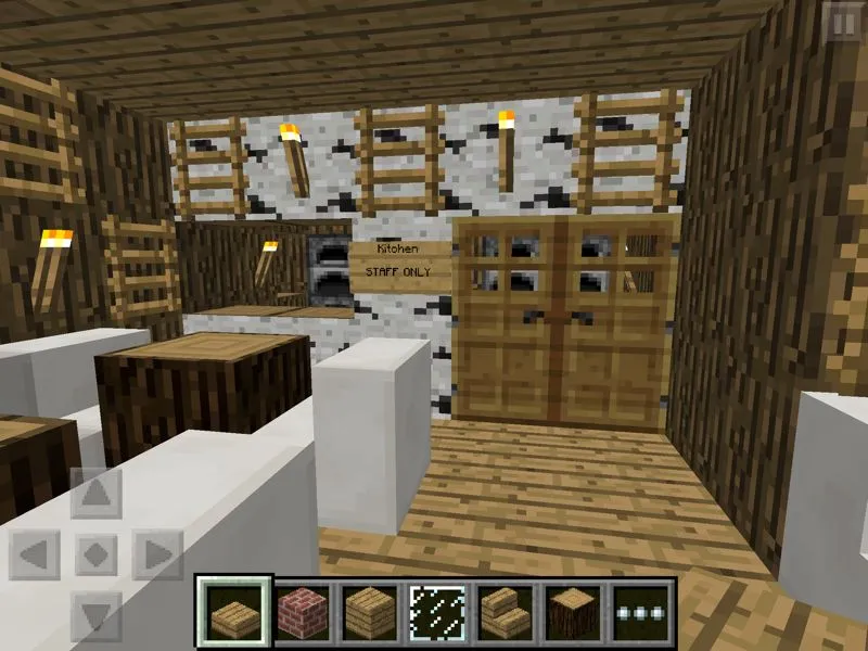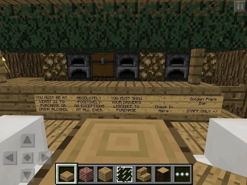 Working on the "Golden Plank" Restaurant (Western theme). Got the kitchen built (plenty of ovens), and the bar (tropical looking with the leaf canopy). Putting out the tables and chairs. Rooms coming soon!