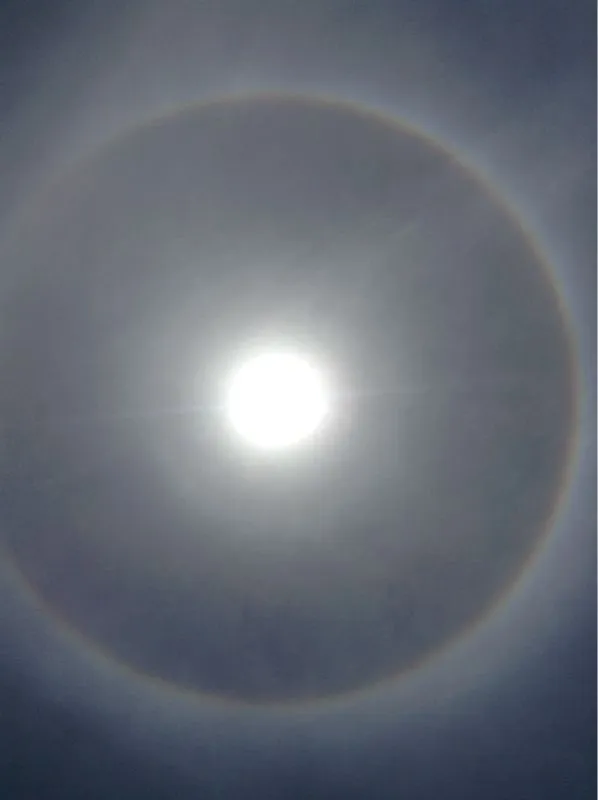 We've just been on the beach......the sun is unusual today, it's surrounded by a ring.....I've never seen it like this before.