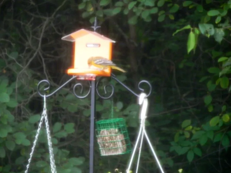 I have a squirrel with half a tail in my yard but haven't got a photo yet. But I did get a photo of the oriole that finally visited my oriole feeder.