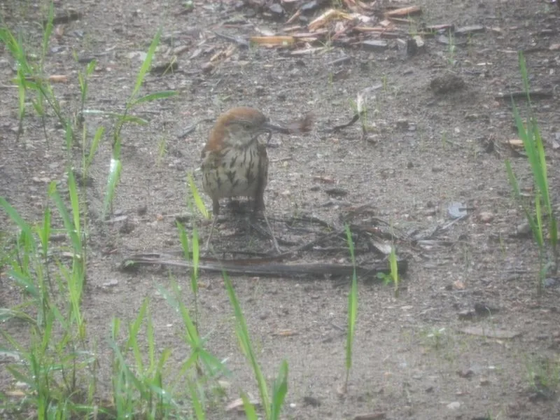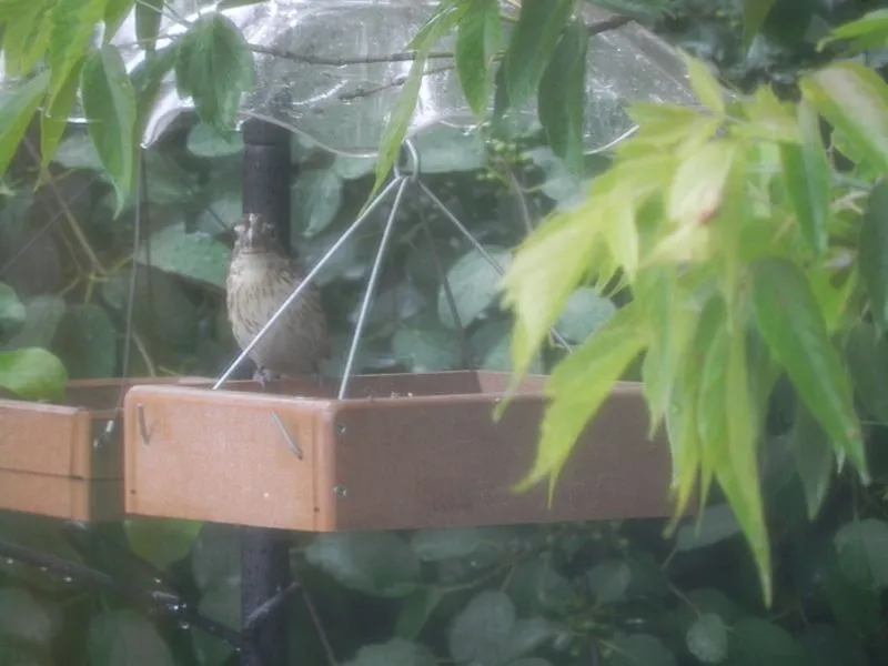 A hawk flew by a caused a quiet spell, but was too fast for a photo. I also saw a blue jay, a goldfinch, a catbird, grackles, and this bird that is either a juvenile or a female redbreasted grosbeak.