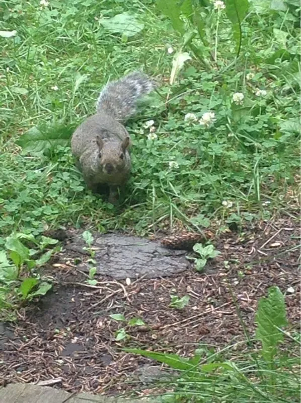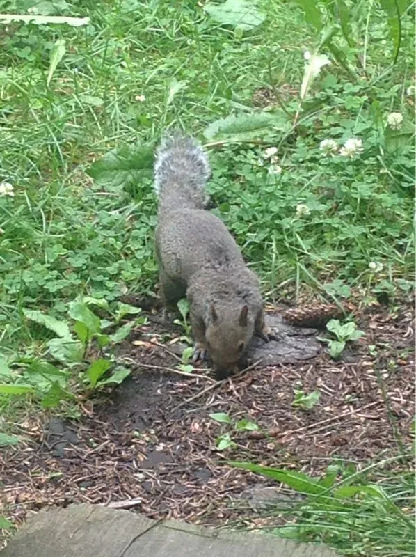 Here's a squirrel I saw, just now. It was less than 5' from me.