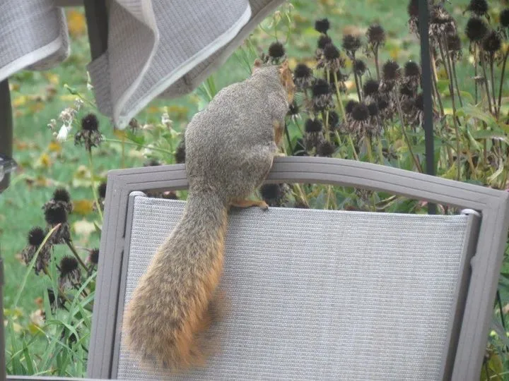 And a 3rd year Squirrel practicing balance acts on my patio chair!![]()