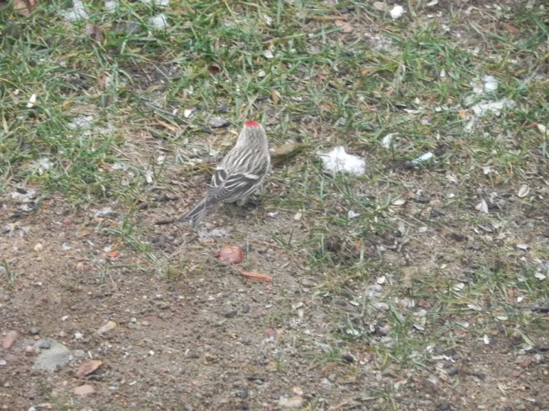 I may have a hundred birds in my backyard right now. Most are pine siskens, but a few of the regulars are challenging them at the feeders. The cardinals wait for a blue jay to chase them away, but the woodpeckers come on in. Some goldfinches are part of the flock and house finches seem to be too. A new bird for me is this common redpoll.