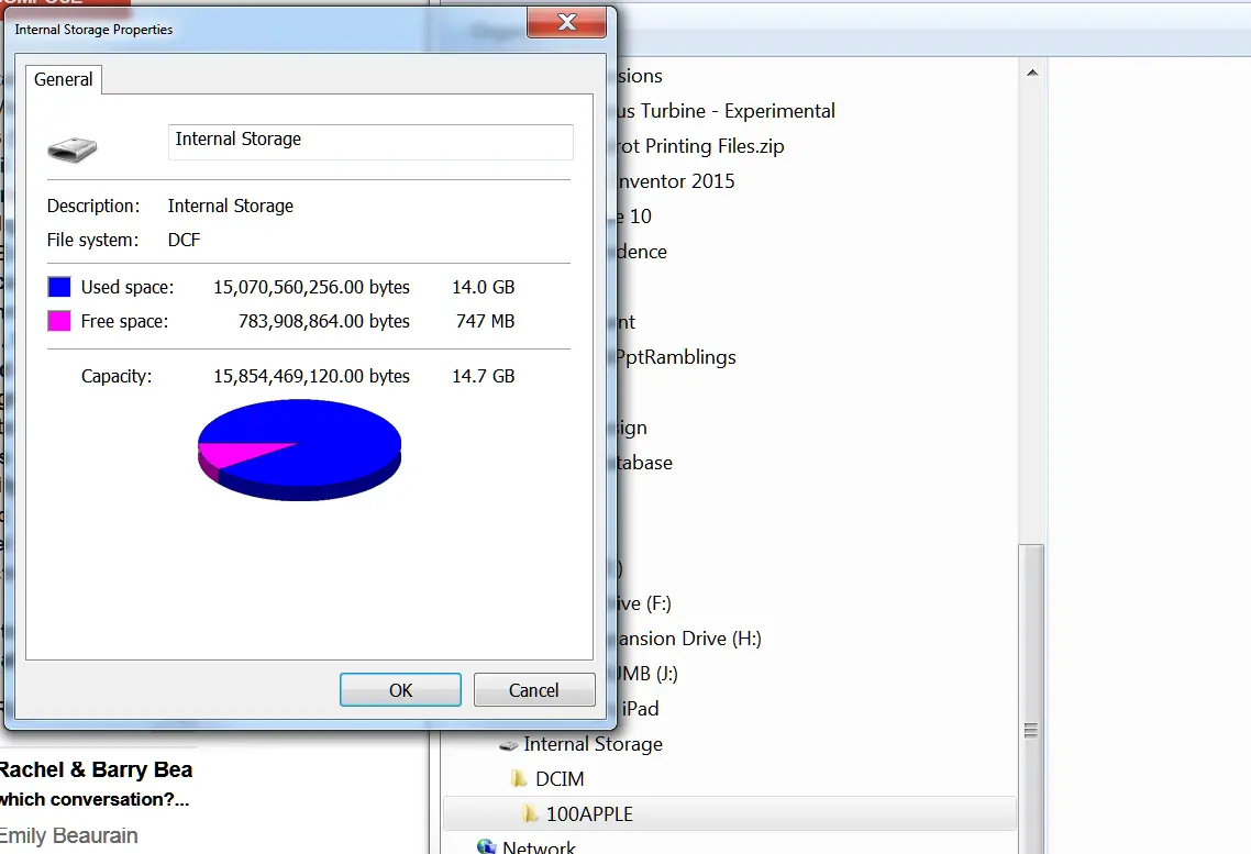 My IPad is is short on memory, it seems, even though all I have stored on it are a few photos and some very scares 1-minute videos. Piccy attached of folder properties.